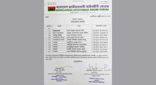 খুলনা জেলা জাতীয়তাবাদী আইনজীবী ফোরামের আহবায়ক রনি, সদস্য সচিব আছাদুল