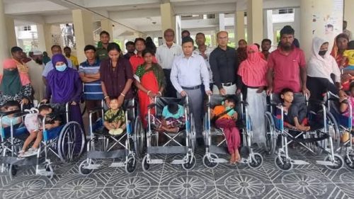 অস্বচ্ছল ছাত্র/ছাত্রী মহিলা ও প্রতিবন্ধীদের হুইল চেয়ার বাইসাইকেল ও সিলাই মেশিন বিতরণ