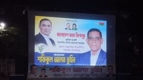 একজন বিএনপি জাতীয় নির্বাহী কমিটির ছাত্র বিষয়ক সম্পাদক রকিবুল ইসলাম বকুল খালিশপুর-দৌলতপুর ও খানজাহান আলী থানার বিভিন্ন স্পটে এবং খুলনা মহানগর বিএনপির সাধারণ সম্পাদক শফিকুল আলম তুহিন খুলনা ও সোনাডাঙ্গা থানার বিভিন্ন স্পটে বড় পর্দায় খেলা দেখানোর ব্যবস্থা করেন।
