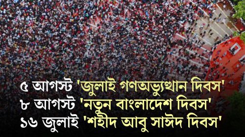 ৮ ই আগস্ট ‘নতুন বাংলাদেশ দিবস’, ১৬ জুলাই ‘শহীদ আবু সাঈদ দিবস’