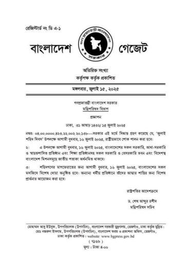গত বছর ছাত্র-জনতার আন্দোলনে রংপুরে পুলিশের গুলিতে আবু সাঈদের নিহত হওয়ার দিনটি স্মরণে জুলাই শহীদ দিবস ঘোষণা করেছে সরকার। দিবসে রাষ্ট্রীয়ভাবে শোক পালন করা হচ্ছে।
