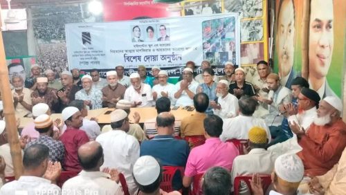 মঙ্গলবার (২২ জুলাই) আছর বাদ সোনাডাঙ্গা থানা দলীয় কার্যালয়ে ঢাকার উত্তরায় মাইলষ্টোন স্কুল এন্ড কলেজের মর্মান্তিক বিমান দূর্ঘটনায় নিহতদের স্বরণে দেশব্যাপি রাষ্ট্রীয় শোক পালন এবং নিহতের আত্মার মাহফিরাত ও আহতের দ্রুত আরোগ্য কামনায় খুলনা বিএনপির বিশেষ দোয়া অনুষ্ঠানে সভাপতিত্বকালে এসব কথা বলেন খুলনা-২ আসনের সাবেক সংসদ সদস্য ও খুলনা মহানগর বিএনপির সাবেক সভাপতি নজরুল ইসলাম মঞ্জু।