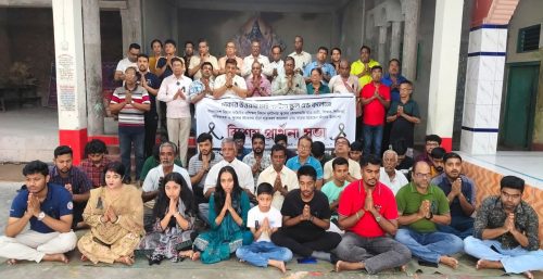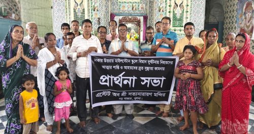 রাজধানীর উত্তরায় মাইলস্টোন স্কুল এ্যান্ড কলেজে ঘটে যাওয়া ভয়াবহ বিমান দুর্ঘটনায় নিহতদের আত্মার শান্তি কামনা, ও আহতদের দ্রুত সুস্থতা কামনায় সত্যনারায়ণ মন্দির বড়বাজার খুলনার উদ্যোগে এক প্রার্থনা সভা অনুষ্ঠিত হয়।