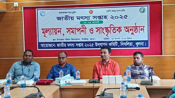 এস.এম.শামীম, দিঘলিয়া খুলনা।খুলনার দিঘলিয়া উপজেলায় জাতীয় মৎস্য সপ্তাহ ২০২৫ উপলক্ষে মূল্যায়ন, সমাপনী ও সাংস্কৃতিক অনুষ্ঠান অনুষ্ঠিত হয়েছে। ২৪শে আগস্ট উপজেলা