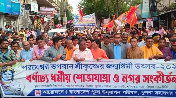 অদিতি সাহা, খুলনার খবর।।খুলনায় শ্রীকৃষ্ণের জন্মাষ্টমী উৎসব মহাসমারোহে উদযাপিত হয়েছে। শ্রীকৃষ্ণের ৫ হাজার ২৫১তম জন্মতিথি উপলক্ষে মহানগর পূজা পরিষদের উদ্যোগে
