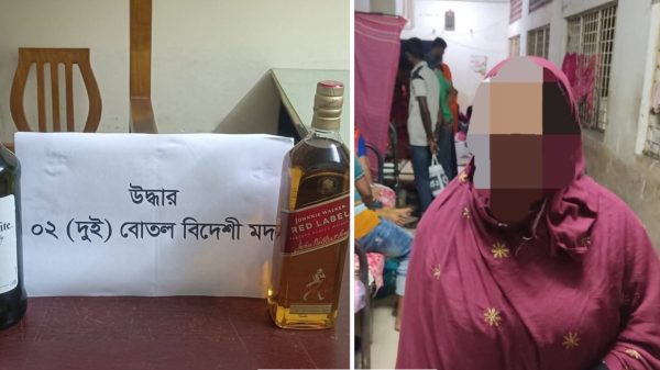 খুলনায় ২ লিটার বিদেশী মদ ও মাদক বিক্রয়লব্ধ টাকা সহ ১ জন আটক