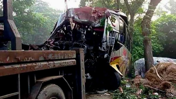 অতনু চৌধুরী(রাজু)বাগেরহাট প্রতিনিধি||বাগেরহাটের ফকিরহাটে পরিবহন নিয়ন্ত্রণ হারিয়ে গাছের সাথে ধাক্কা লেগে এক অজ্ঞাত যাত্রী (৩৫) নিহত হয়েছেন। এসময় চালকসহ ২০’জন