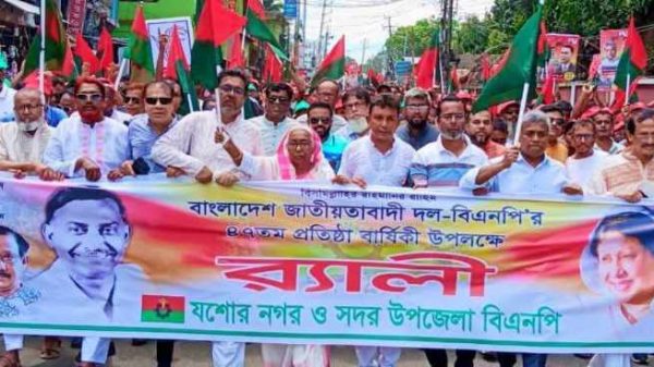 মোঃ জসিম উদ্দিন তুহিন,যশোর জেলা প্রতিনিধি।।যশোরে বাংলাদেশ জাতীয়তাবাদী দলের (বিএনপি) ৪৭তম প্রতিষ্ঠাবার্ষিকী বর্ণাঢ্য আয়োজনের মধ্য দিয়ে উদযাপিত হয়েছে। রোববার দুপুর