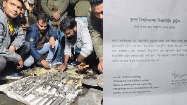 খুলনার খবর।।খুলনায় একটি ইঞ্জিনিয়ারিং ওয়ার্কশপে অস্ত্রের অংশ তৈরির ঘটনাকে কেন্দ্র করে শহর,জুড়ে উত্তেজনা ছড়িয়ে পড়ে। পুলিশের ওই অভিযানে কারখানা থেকে