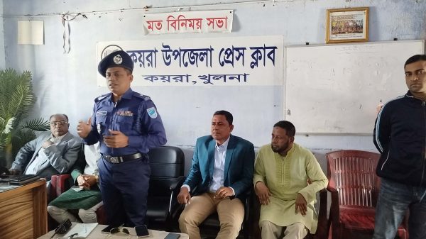 মোঃ ফয়সাল হোসেন কয়রা উপজেলা প্রতিনিধি।। কয়রা উপজেলা প্রেসক্লাবের সাংবাদিকদের সাথে মতবিনিময় করেছেন কয়রা থানার নবাগত অফিসার ইনচার্জ মোঃ জাহিদুল