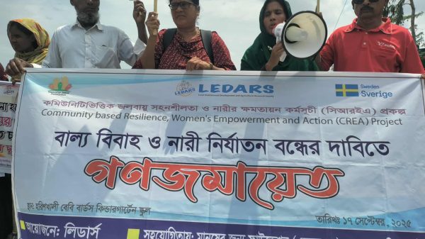 আল-হুদা মালী শ্যামনগর প্রতিনিধি।।শ্যামনগর উপজেলার বুড়িগোয়ালিনী ইউনিয়ন ক্লাইমেট এ্যাকশন গ্রুপের আয়োজনে লিডার্স, মানুষের জন্য ফাউন্ডেশন ও এ্যাম্বাসি অব সুইডেনের সহযোগিতায়