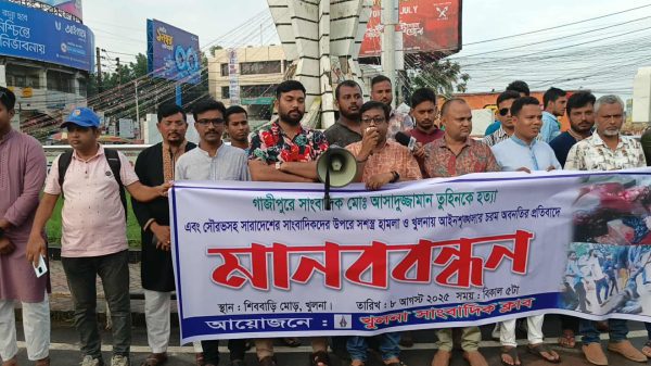 সাংবাদিক তুহিন হত্যার প্রতিবাদে খুলনায় মানববন্ধন