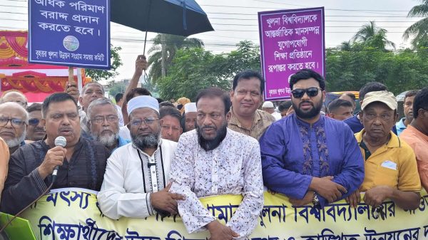গল্লামারী মৎস্য বীজ উৎপাদন খামার  বিশ্ববিদ্যালয়ের আওতায় অধিগ্রহণের দাবিতে  মানববন্ধন