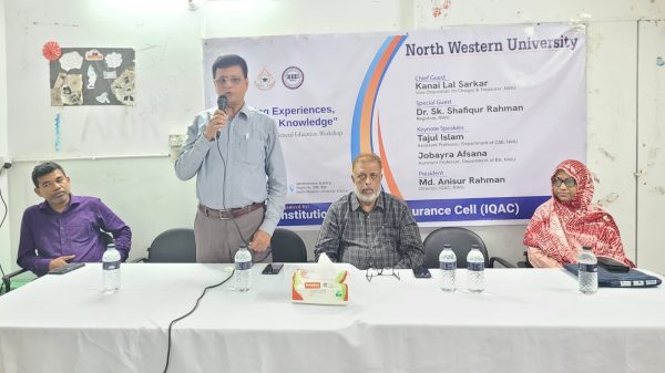 নিজস্ব প্রতিনিধি || খুলনার নর্থ ওয়েস্টার্ন ইউনিভার্সিটিতে “বিএনকিউএফ প্রতিপালন ও জিইডি বিষয়ক কর্মশালার আলোকে ” অভিজ্ঞতার ভিত্তিতে জ্ঞানকে প্রসারিত করুণ”