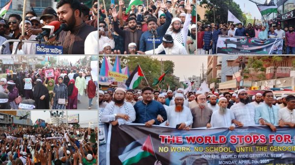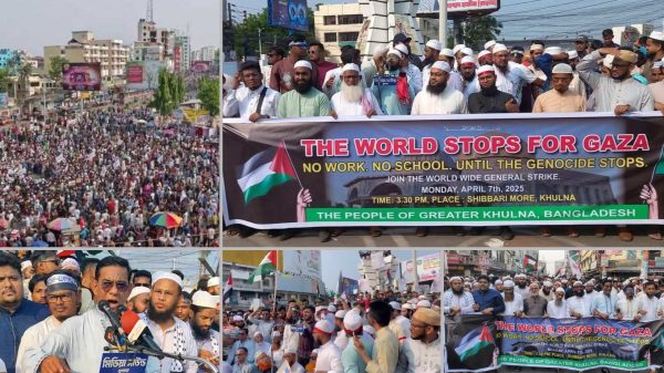 ফিলিস্তিনে ইসরাইলী বাহিনীর গণহত্যা বন্ধে ও বৈশ্বিক হরতালের সমর্থনে খুলনায় সর্বদলের বিক্ষোভ মিছিল ও সমাবেশ
