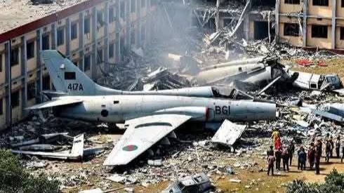 রাজধানীর উত্তরায় বিমান বাহিনীর একটি প্রশিক্ষণ বিমান (ফাইটার জেট) বিধ্বস্ত