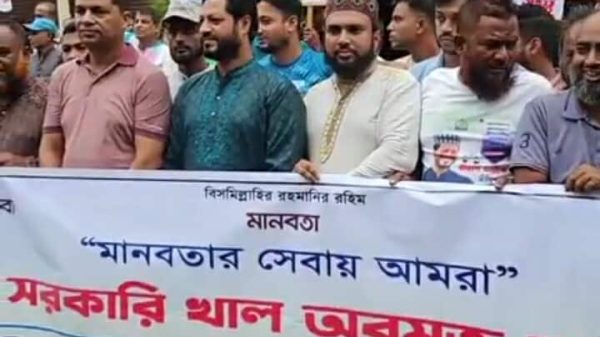 অতনু চৌধুরী(রাজু) বাগেরহাট জেলা প্রতিনিধি।।বাগেরহাট জেলার সকল সরকারী খাল দখলমুক্ত করার দাবীতে মানববন্ধন ও অবস্থান কর্মসূচী পালন করছে বিভিন্ন শ্রেণীপেশার