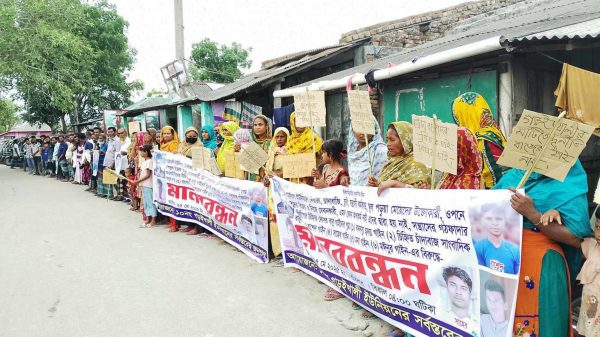 পাইকগাছায় চিহ্নিত সন্ত্রাসীদের গ্রেফতারের দাবীতে এলাকাবাসীর মানববন্ধন