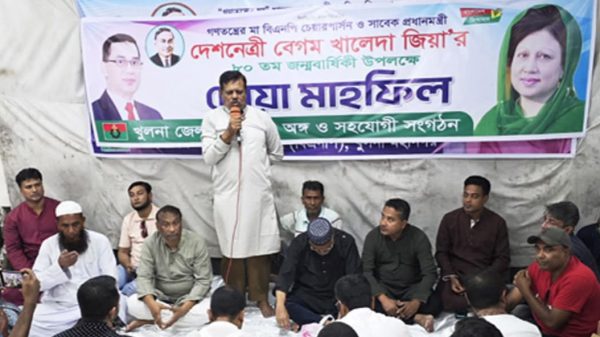 খুলনার খবর ||সাবেক প্রধানমন্ত্রী ও বিএনপি চেয়ারপার্সন বেগম খালেদা জিয়ার ৮০তম জন্মবার্ষিকী উপলক্ষে খুলনা মহানগর বিএনপি দলীয় কার্যালয়ে দোয়া মাহফিলের