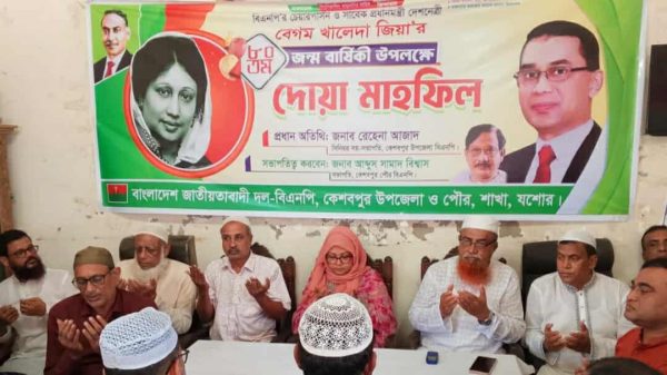 পরেশ দেবনাথ, কেশবপুর, যশোর ||কেশবপুরে বিএনপি’র চেয়ারপার্সন ও সাবেক প্রধানমন্ত্রী খালেদা জিয়া’র ৮০তম জন্মবার্ষিকী উপলক্ষে দোয়া মাহফিল অনুষ্ঠিত হয়েছে। শুক্রবার