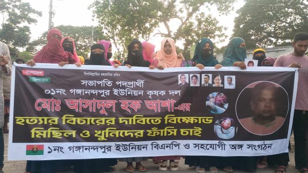 ঝিকরগাছার ছুটিপুর বাজারে আশা হত্যাকারীদের বিচারের দাবিতে বিক্ষোভ মিছিল