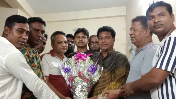 প্রকৌশলী মোঃ হায়দার আলী উপ – সহকারী প্রকৌশলীকে ফুল দিয়ে সংবর্ধনা