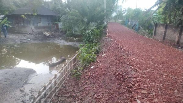 মোঃফয়সাল হোসেন কয়রা প্রতিনিধি||খুলনার কয়রায় বাঁশ দিয়ে গাইড ওয়াল ও ফিনিসিং এর নামে ২/৩ নং ইটের ডাস্ট খোয়া ব্যবহার করে