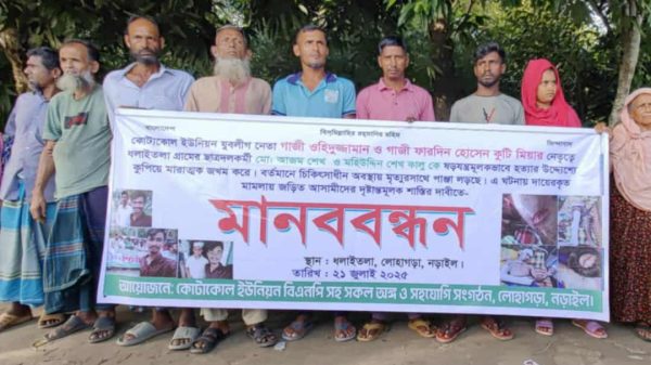 আলমগীর হোসেন,নড়াইল প্রতিনিধি ||নড়াইলের লোহাগড়া উপজেলার ধলইতলা গ্রামের ছাত্রদল কর্মী আজম শেখ ও মহিউদ্দিন শেখ ওরফে কালুকে হত্যা চেষ্টার প্রতিবাদে
