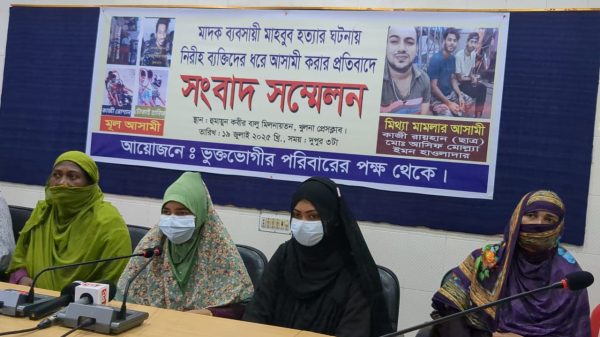 যুবদল নেতা মাহবুব হত্যা মামলায় নিরীহদের আসামি করার অভিযোগে খুলনায় সংবাদ সম্মেলন