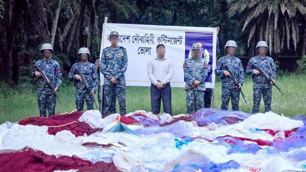 বাংলাদেশ নৌবাহিনী অভিযানে ভোলার লালমোহনে আড়াই কোটি টাকার অবৈধ জাল জব্দ