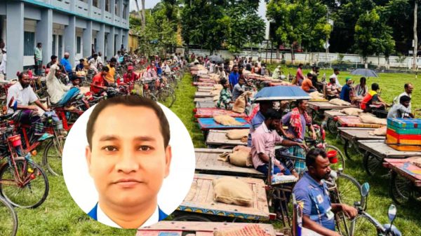 আলফাডাঙ্গায় ৩০০ ভ্যানচালকের মাঝে শুকনো খাবার বিতরণ