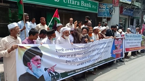 ইসলামী প্রজাতন্ত্র ইরানের উপর যায়নবাদী ইসরাইলের কাপুরুষোচিত ও বর্বরোচিত হামলার প্রতিবাদে নগরীতে মানববন্ধন