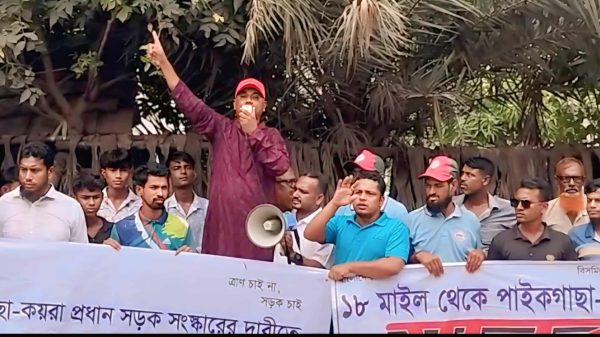 মোঃ ফসিয়ার রহমান পাইকগাছা || খুলনার পাইকগাছায় নাগরিক ফোরামের মানববন্ধনে দেয়া ১ মাসের আল্টিমেটামের দুদিনের মধ্যে প্রধান সড়কের সংস্কার কাজ