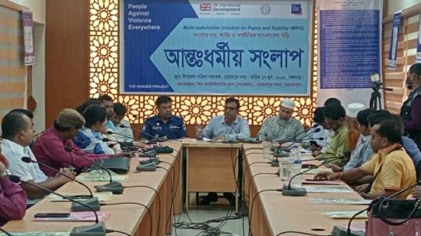 পরেশ দেবনাথ, খুলনার খবর ||“সংঘাত নয়, শান্তি ও সম্প্রীতির বাংলাদেশ গড়ি” প্রতিপাদ্যেকে সামনে রেখে মেহেরপুর সদরে আন্তঃধর্মীয় সংলাপ অনুষ্ঠিত হয়েছে।