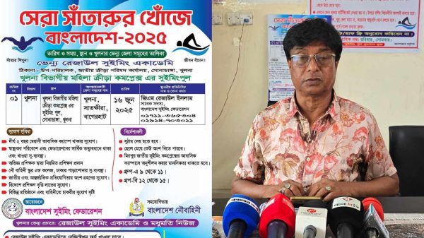 খুলনার খবর|| তৃণমূল থেকে প্রতিভা তুলে আনার পরিকল্পনা। আগামীকাল খুলনায় অনুষ্ঠিত হবে সেরা সাতারুর খোজে বাংলাদেশ-২০২৫ কর্মসূচি। বাংলাদেশ সুইমিং ফেডারেশনের