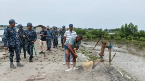 কয়রায় বেড়িবাঁধ থেকে অবৈধ পাইপ অপসারণ