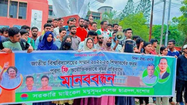 ফরম ফি বৃদ্ধির প্রতিবাদে যশোরে ছাত্রদলের মানববন্ধন