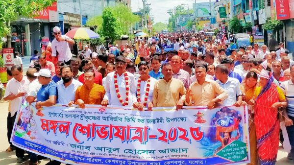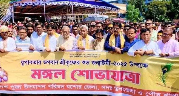 মোঃ জসিম উদ্দিন তুহিন,যশোর জেলা প্রতিনিধি।।যশোরে জন্মাষ্টমী উপলক্ষে জেলা পূজা উদযাপন পরিষদের আয়োজনে বর্ণাঢ্য মঙ্গল শোভাযাত্রা ও আলোচনা সভা অনুষ্ঠিত