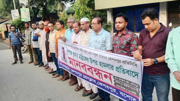 কেশবপুরে সাংবাদিক সুশান্তের উপর হামলার প্রতিবাদে মানববন্ধন