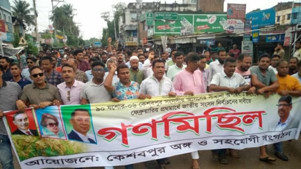 পরেশ দেবনাথ, কেশবপুর, যশোর।।যশোর -৬ কেশবপুর সংসদীয় আসনের সীমানা অপরিবর্তিত রেখে আগামী ফেব্রুয়ারীর প্রথমার্ধের জাতীয় সংসদ নির্বাচনের দাবিতে কেশবপুর শহরে