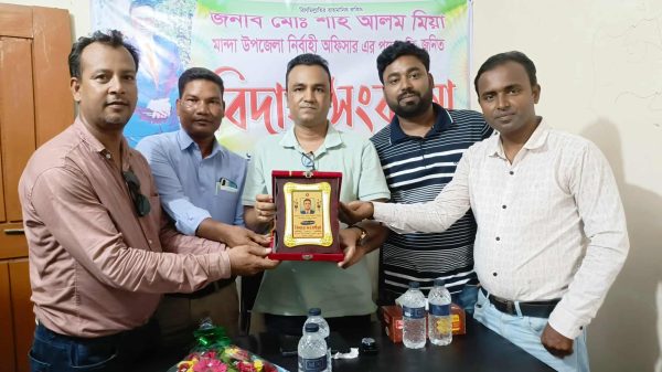 আমজাদ হোসেন নওগাঁ || নওগাঁর মান্দা উপজেলা নির্বাহী অফিসার মো. শাহ আলম মিয়া’র পদোন্নতি জনিত কারণে বিদায় সংবর্ধনা দেওয়া হয়েছে।