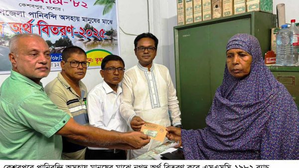 কেশবপুরে পানিবন্দি মানুষের মাঝে এসএসসি- ১৯৮২ ব্যাচের উদ্যোগে নগদ অর্থ বিতরণ
